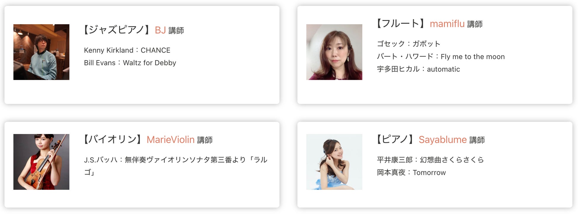 日本最大級オンライン習い事カフェトークで音楽レッスンを教える先生たちのオンラインコンサート