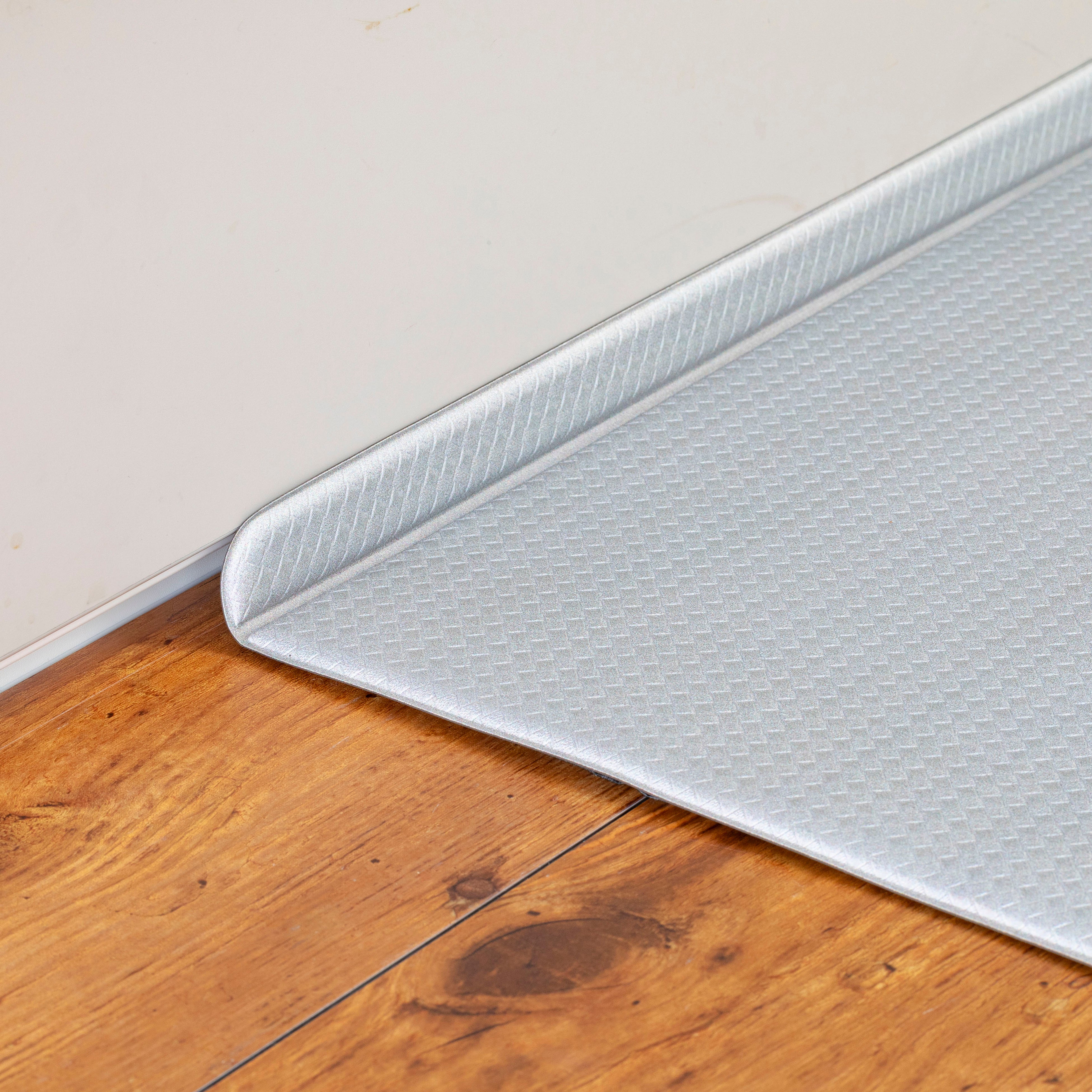 L字の折り目がキッチンと床の隙間にぴったりフィットし、ごみが溜まりにくい。水や汚れもサッと拭くだけでお手入れ簡単。