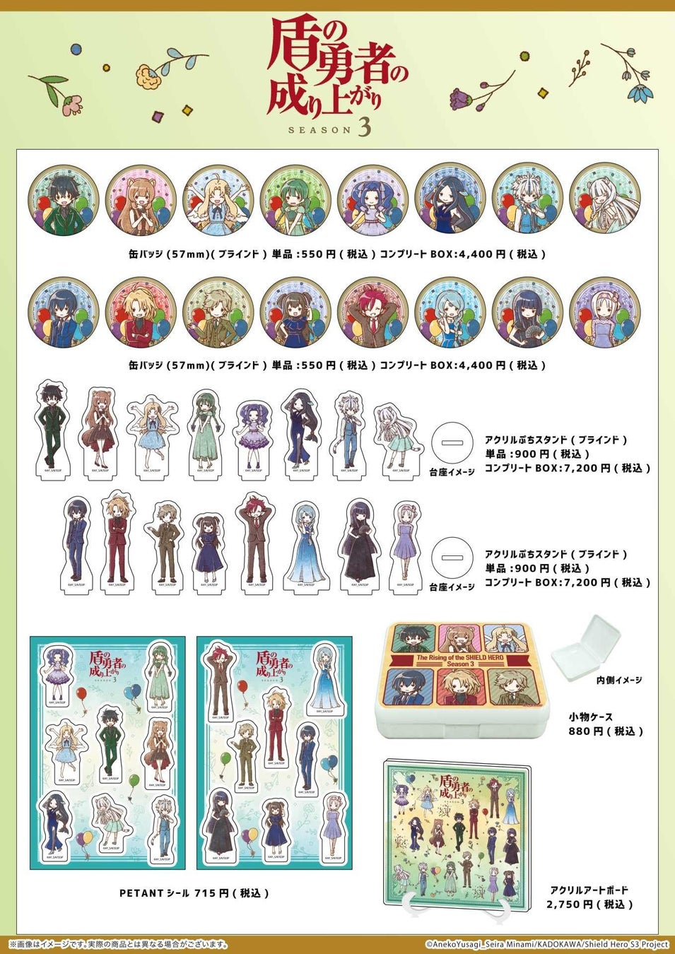 TVアニメ『盾の勇者の成り上がり Season 3』のPOP UP CORNERには、定番グッズの缶バッジが登場!