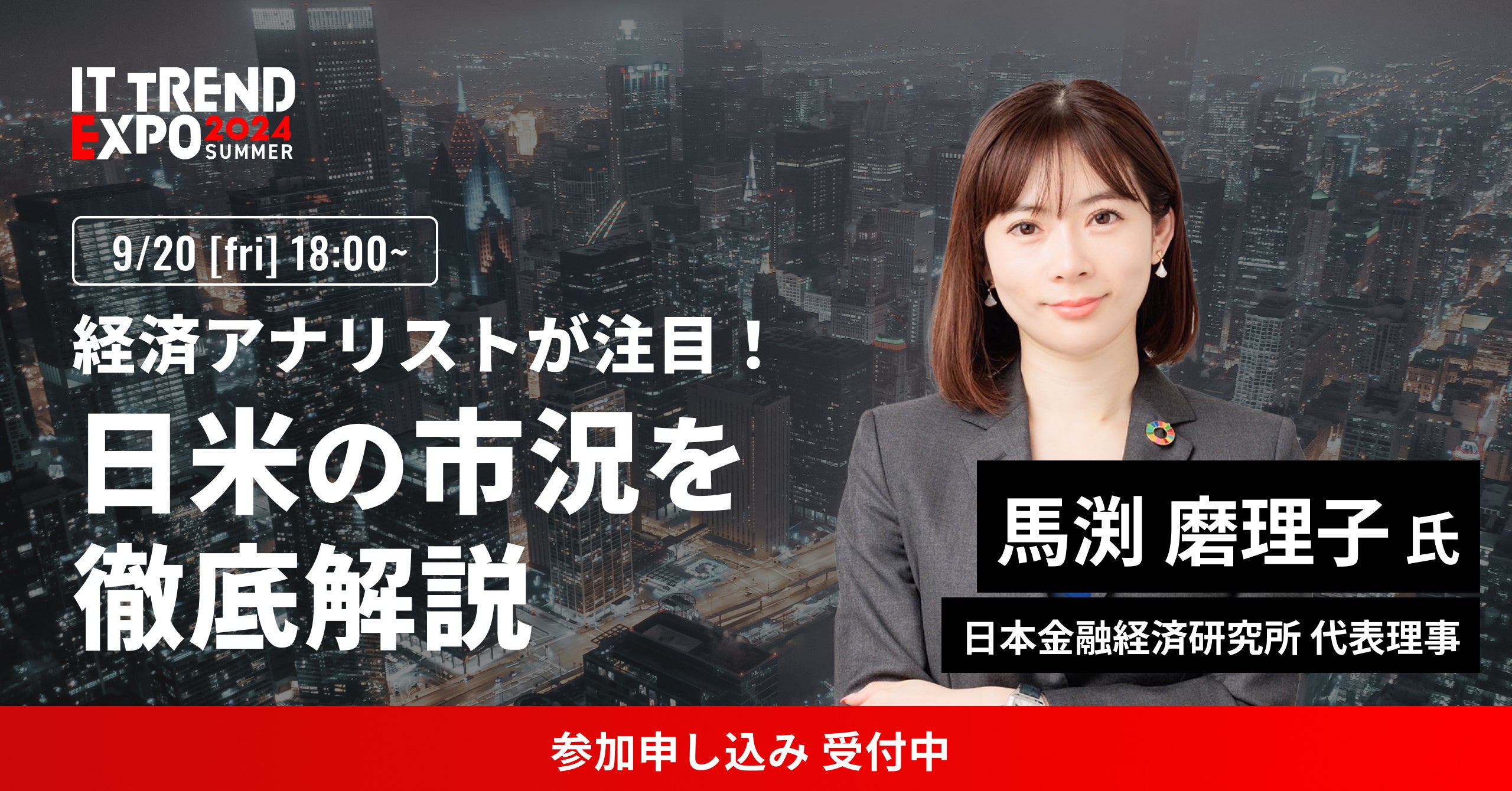 業界最大級のオンライン展示会「ITトレンドEXPO2024 Summer」、日本金融経済研究所 代表理事 馬渕 磨理子 氏の講演内容が決定!