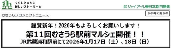 JR武蔵浦和駅前にて2026年1月17日(土)、18日(日)の2日間、第11回むさうら駅前マルシェ開催!!