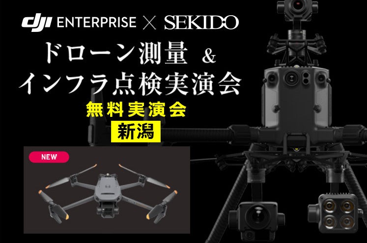 日本初のDJI正規販売代理店である株式会社セキド(本社:東京都港区、代表取締役:⼤下貴之)ではセキド 新潟上越と共同で、2023年6月16日(金)13時より富山県魚津市にて、産業向け業務用ドローンを使った構造物点検と測量の無料実演会を開催いたします。コンパクトな「DJI MAVIC 3 ENTERPRISE(ディージェイアイ マビック 3 エンタープライズ)」や、DJIの産業用フラッグシップドローン「MATRICE 300 RTK(マトリス 300 アールティーケー、以下 M300 RTK)」と対応カメラモジュール「Zenmuse(ゼンミューズ) L1/P1/H20T/H20N」、小型産業用ドローン「DJI MATRICE 30 T(ディージェイアイ マトリス 30 ティー)」の性能を、測量・点検を模したデモフライトでご確認いただき、撮影データをお持ち帰りいただける、導入検討中の事業者に最適なイベントです。補助金・助成金を活用した導入を検討されているお客様も、ぜひこの機会にご参加ください。