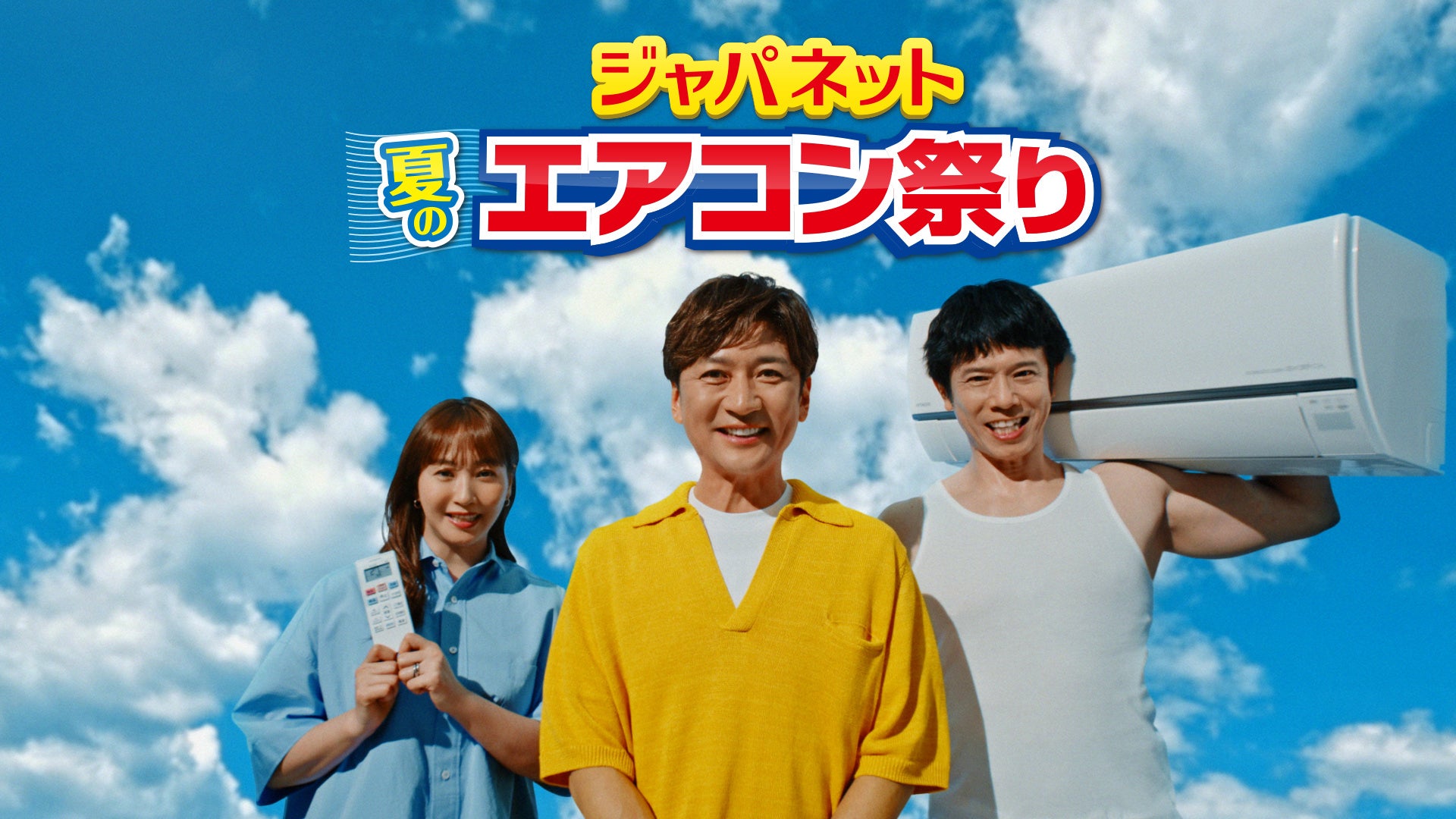国分太一が、藤本美貴・庄司智春夫妻とCM初共演!エアコン担いだ庄司さんが「おトクーっ!!」 ~「ジャパネット夏のエアコン祭り」TVCM公開~