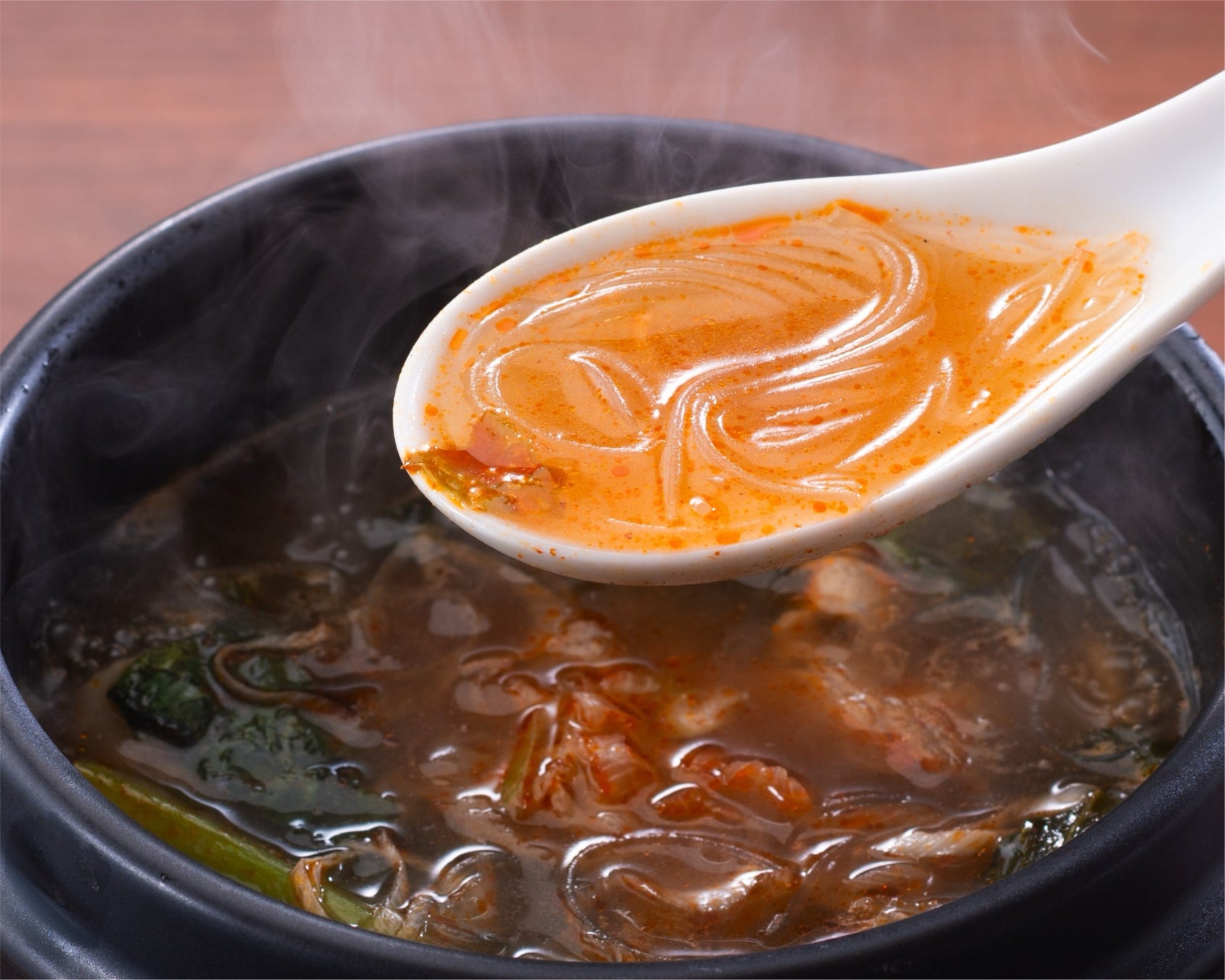 唐辛子と花椒(ホアジャオ)を絶妙にきかせた“旨辛仕立て”のスープ。辛さの中にも深い旨みがあり、香りを引き立てる薬味やスパイスの調整により、“辛いのにやさしい”バランスを実現しています。