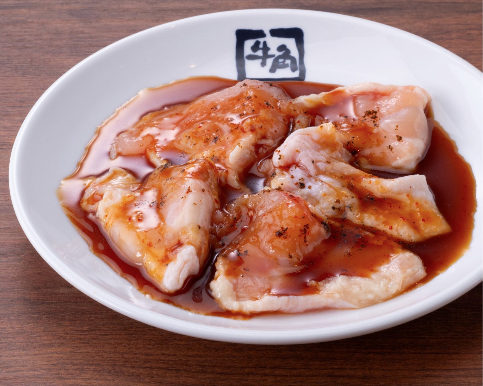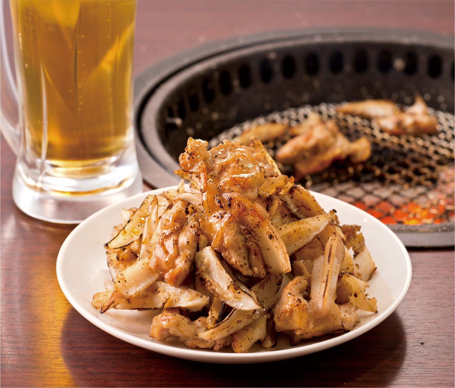 柔らかい食感とほどよく脂がのった上品な味わいが特長の希少部位。『特製醤油焼き』は、七輪で焼くと“焦がし醤油”の香りが立ち上り、隠し味の黒七味が肉の旨みを引き立てます。