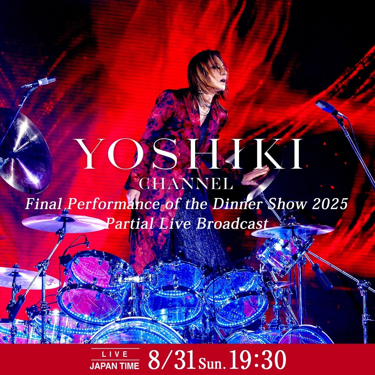 8/31(日)世界一豪華なディナーショー 最終公演の一部を生中継9/1(月)終演翌日、海外からYOSHIKI単独インタビュー生出演