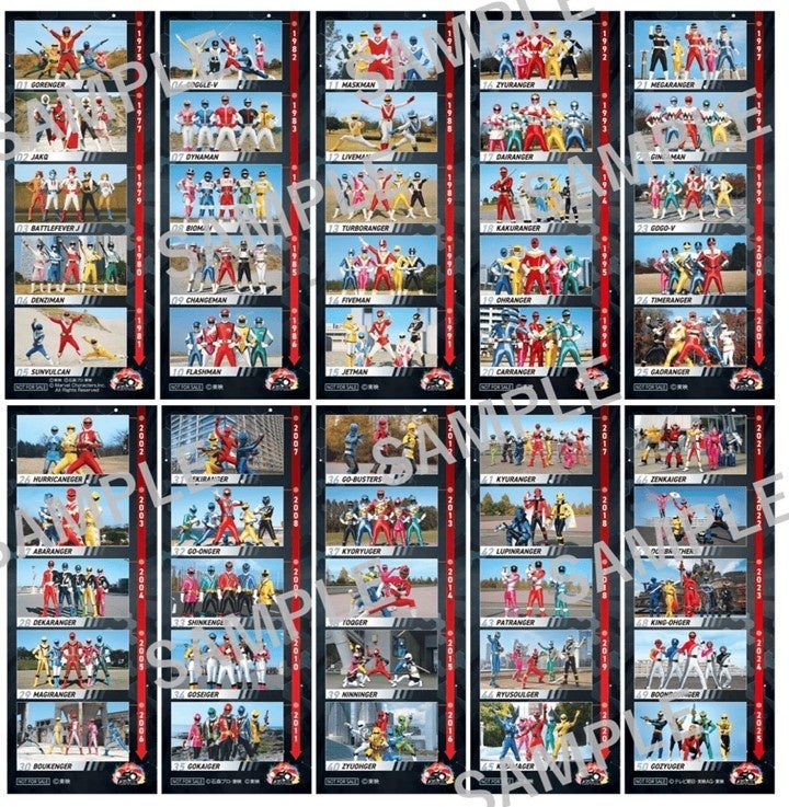 オリジナルしおりには、歴代全50戦隊すべての集合写真が年代別に掲載されており、集めると年表としてお楽しみいただけます。