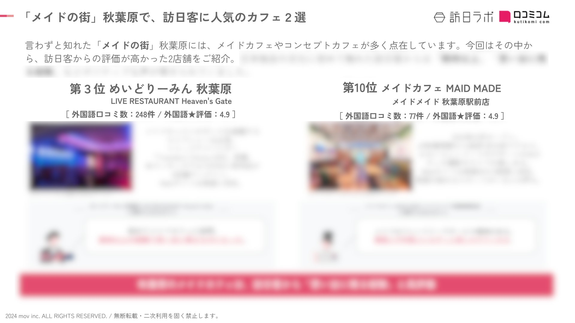 言わずと知れた「メイドの街」秋葉原から、訪日客からの評価が高かった2店舗をご紹介。