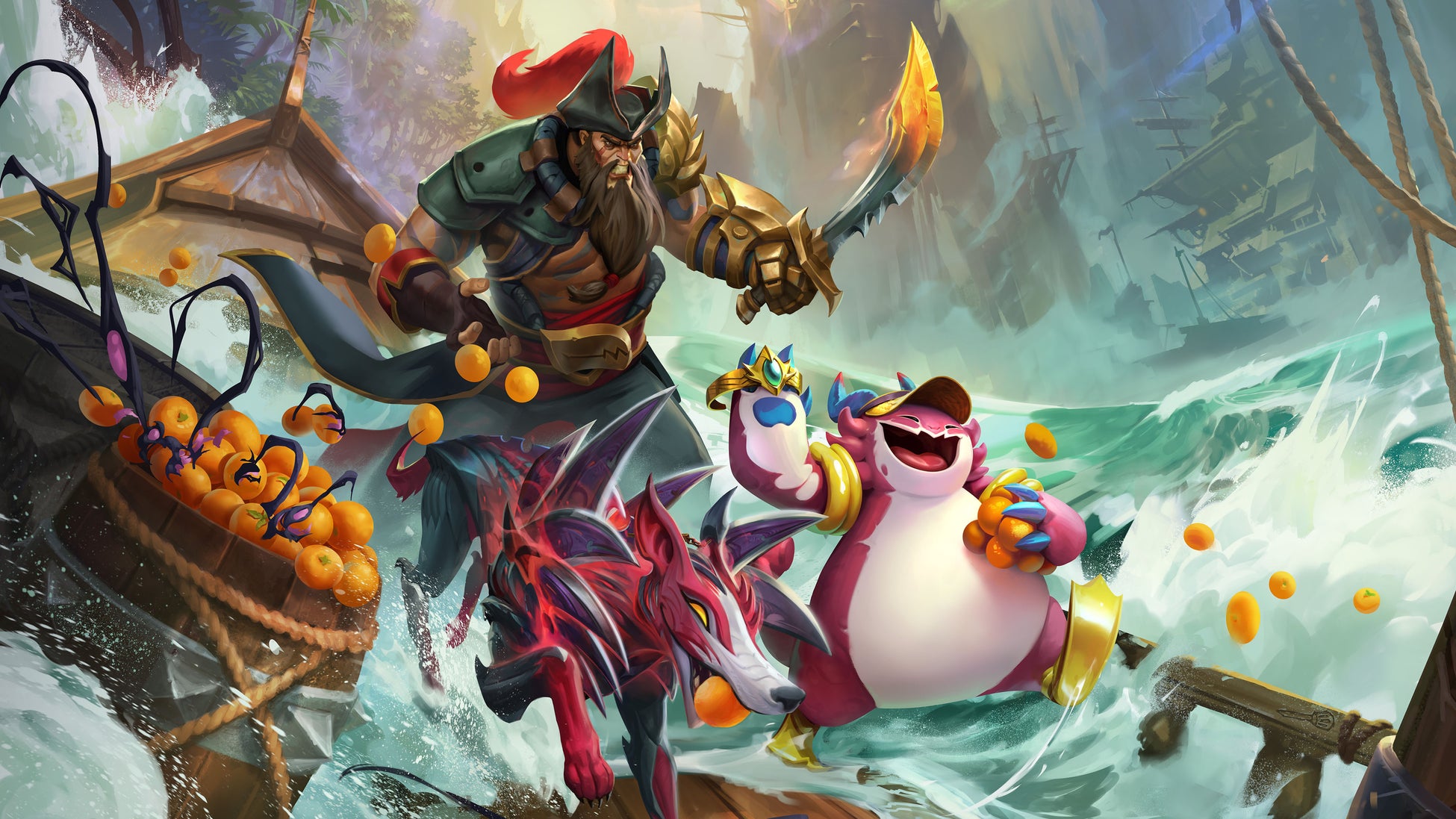 「ホライズン バウンド」の新たなバトルパスには、無料でアンロックできるアイテムが12個含まれており、その内7つがエモートとなっています。有料パスでは、アンロックできるカスタマイズコンテンツが30個以上用意されています。海をテーマとした「発見の船」、「革新の船」、「影の船」、「ビルジウォーター・ベイ」アリーナスキンなどがその一部です。スキューバ スプライトやステラコーン ライトチャージャーといったリトルレジェンドも含まれています。さらに、「ルーンテラ リフォージ: ホライズン バウンド」から、ナイフパップとナイフハウンドという新たなリトルレジェンドが登場します。