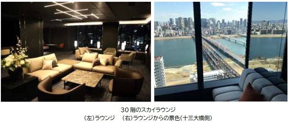 30階に設けられたスカイラウンジからは、梅田の摩天楼群をはじめとする大阪都心の壮大なパノラマビューを一望できます。まるで別世界のような美しい絶景を眺めながら、大切な人との非日常なひとときや、特別な時間を過ごすことができる居住者専用の特等席です。