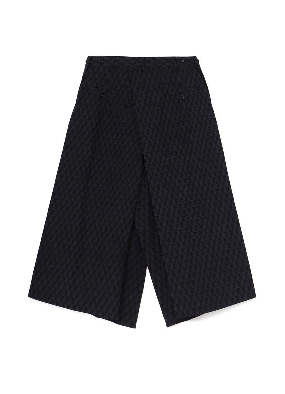 Yohji Yamamoto POUR HOMME 2012春夏コレクションのランウェイに登場した亀甲柄の袴パンツを参考に、風合いとシルエットを忠実に再現するために生地選びから拘りました。そこへ、M A S Uのアイコンでもある天使をモノグラム調にプリントすることで、ヨウジヤマモトの袴パンツとM A S Uが融合した新たなデザインとなっています。