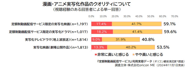 └「SVOD限定の実写化映画&ドラマのクオリティが高いと感じる」 約6割