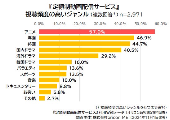 └最多は「アニメ」57.0% 全ジャンルのなかで唯一過半数の回答に