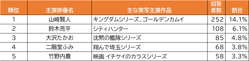 6)好きな漫画・アニメの実写主演俳優ランキング