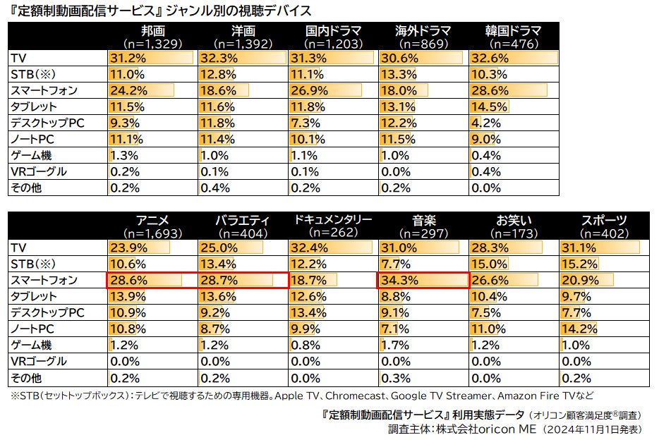 └アニメ/バラエティ/音楽の3ジャンルは「スマートフォン」での視聴が最多に