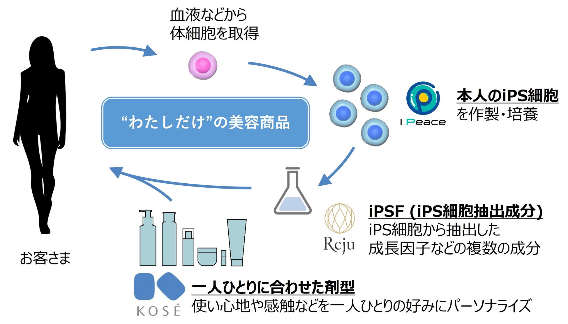 iPS細胞を用いたパーソナライズ美容商品に向けて コーセー、アイ・ピース、レジュが技術提携 ~ “わたしだけ”の美容商品を目指して実証実験へ ~