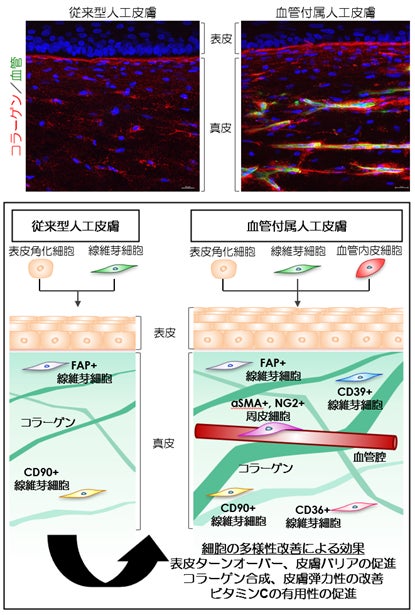 細胞の多様性をもつ次世代の血管付属人工皮膚モデルの構築に成功 ―細胞多様性が肌弾力を生み出す事に着目した新エイジングケア理論を発明―