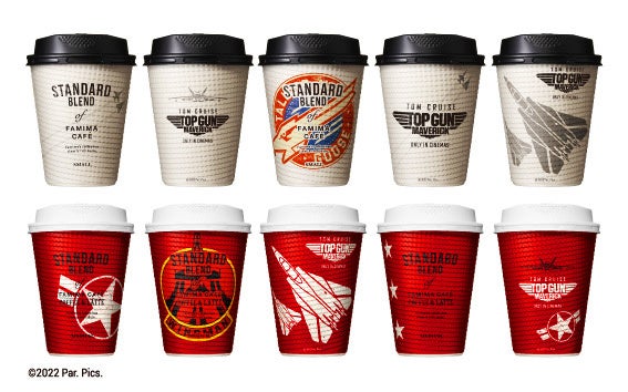 株式会社ファミリーマート(本社:東京都港区、代表取締役社長:細見研介)は、昨年から取り組んでいる5つのキーワードの1つである「『あなた』のうれしい」の一環として、2022年5月27日(金)公開予定の映画「トップガン マーヴェリック」とコラボレーションした「FAMIMA CAFÉ」コーヒー・カフェラテのコラボカップ全10種類(Sサイズ・Mサイズ各5種類)を、「トップガンの日」にあわせて2022年5月13日(金)より、全国のファミリーマート約16,600店にて展開いたします。