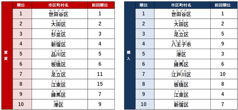 「不動産情報サイト アットホーム」に掲載されている最もアクセス数が多かった東京都の街は、前回(2023年度)に引き続き賃貸・購入ともに「世田谷区」でした。「世田谷区」は、閑静な自然の残る環境が人気で、「二子玉川」や「成城学園前」などの住宅街に発展しました。商店街や飲食店が多い「三軒茶屋」や、サブカルチャーの聖地としても有名な街「下北沢」なども人気のエリアです。