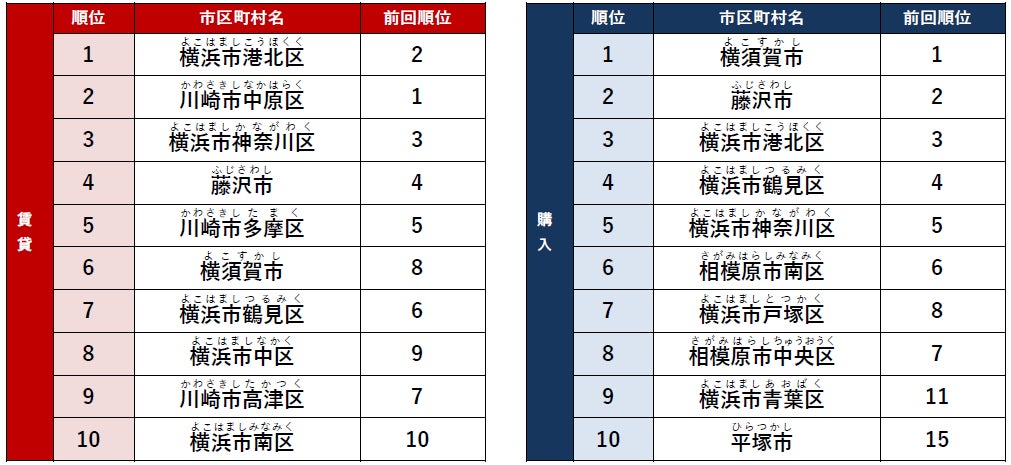 ≪神奈川県でアクセス数が多い街(総合)≫賃貸1位「横浜市港北区」、購入1位「横須賀市」