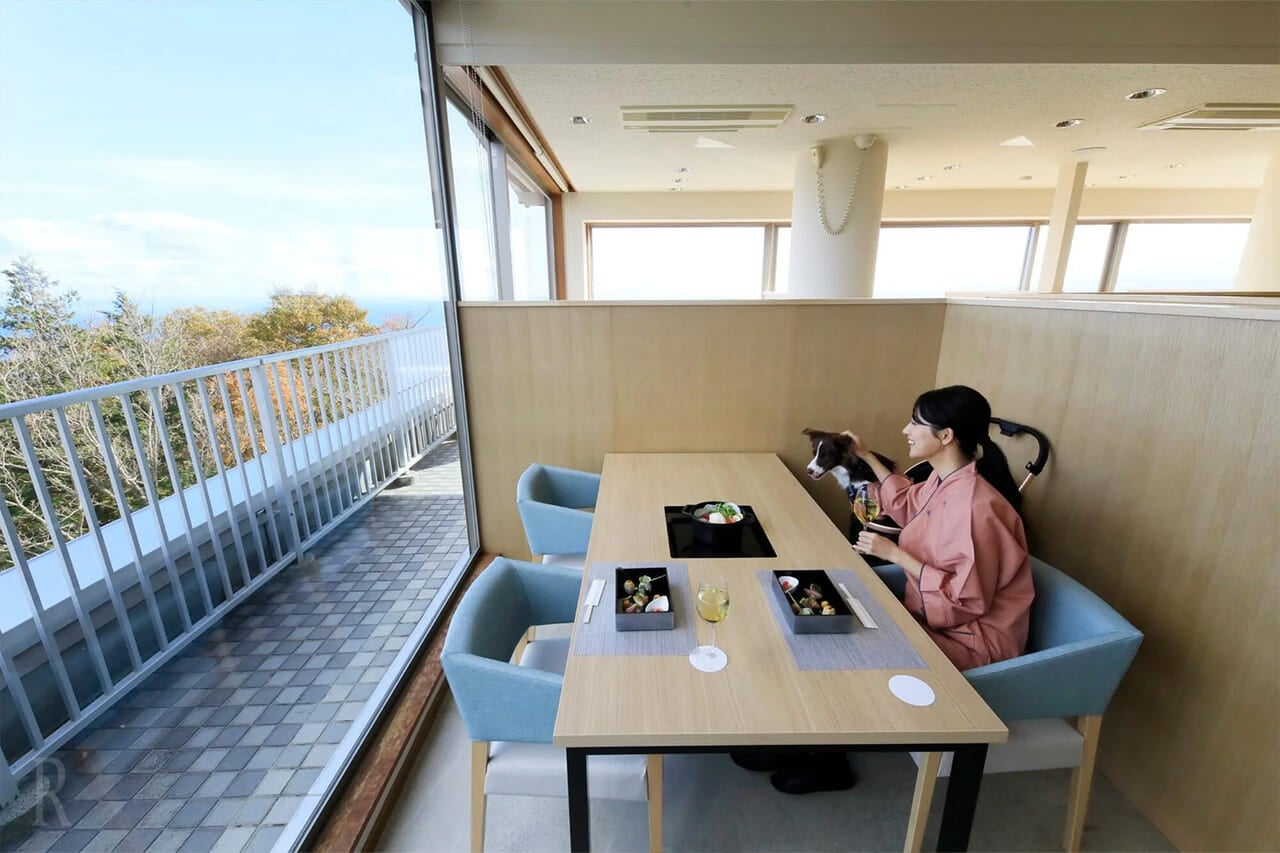 全室でわんちゃんとのご宿泊が可能で、お部屋だけでなくお食事の時間も一緒にお楽しみいただけます。また、館内には3種類のドッグランや、本格的なトリミング&ドライルームを完備。ここでしか味わえないウェルネスな旅をご堪能ください。
