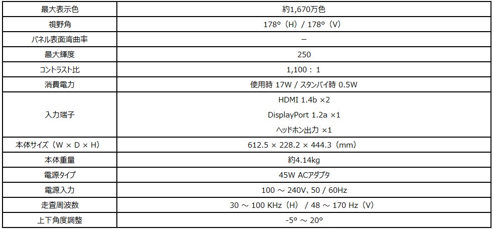 マルチモニター環境などで斜めから見る際も色の変化を最小限に抑えることが出来ます。