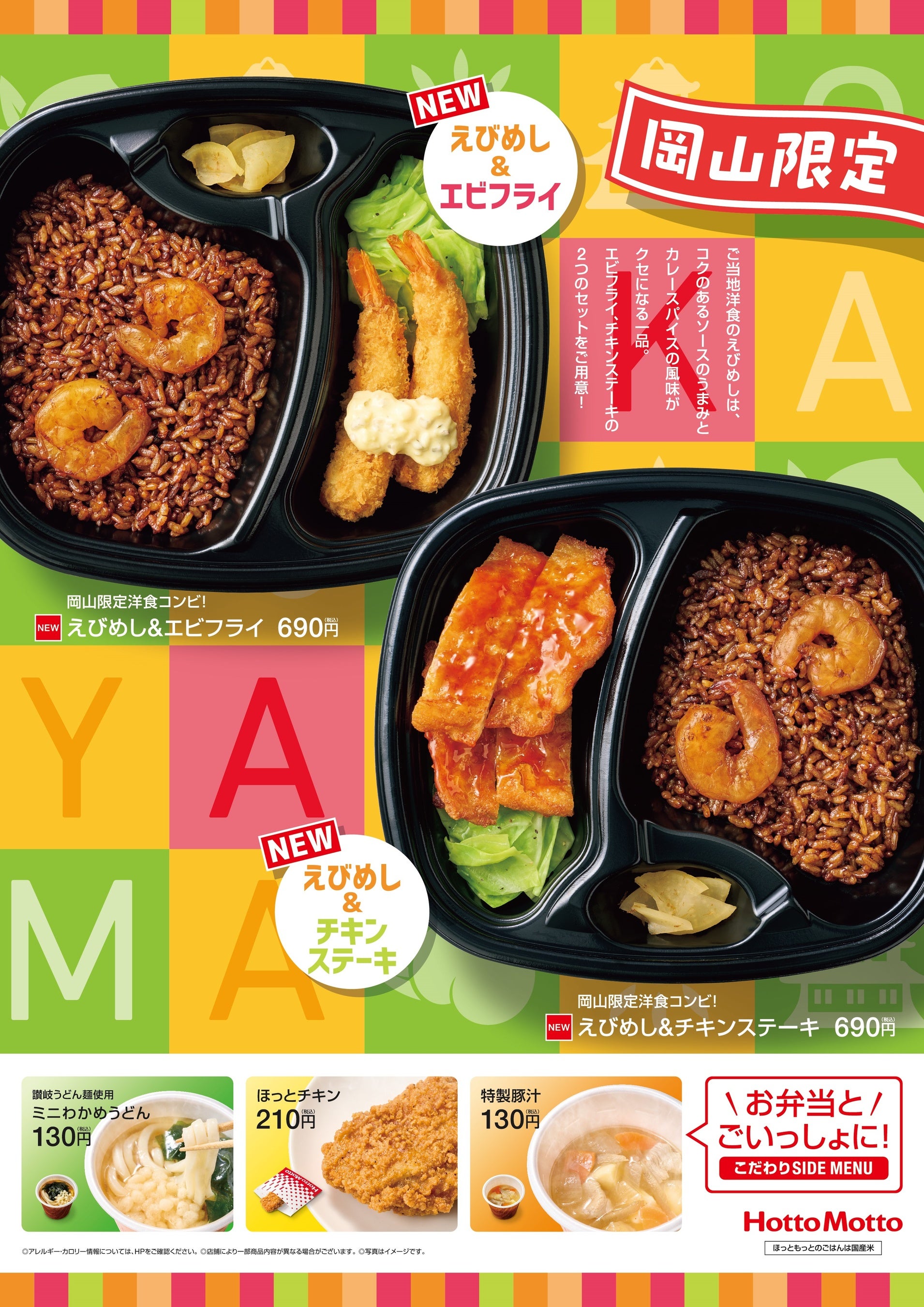 「ほっともっと」【岡山県限定】ご当地えびめしシリーズ!『えびめし&エビフライ』『えびめし&チキンステーキ』4月24日(水)新発売