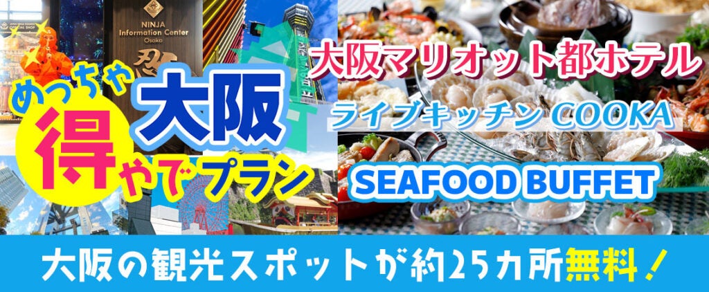 、人気商品につき期間延長11/30迄『おはよう朝日です』でも紹介された大阪楽遊プラン!!大阪市内25以上での無料スポットを楽しめて+レストランCOOKAランチビュッフェ 大阪めっちゃ得やでプランを期間延長しました。
