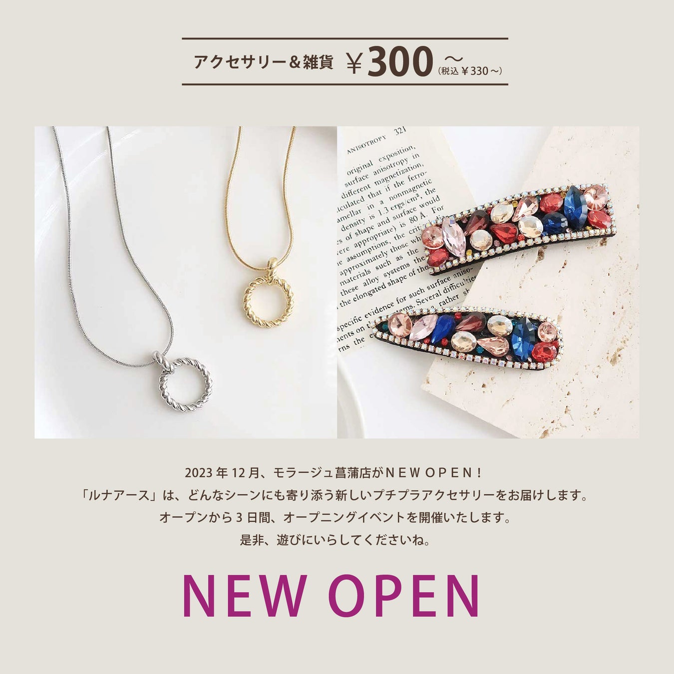 330円~アクセサリーブランド「LUNA EARTH」モラージュ菖蒲店が、12月15日(金)にオープン。