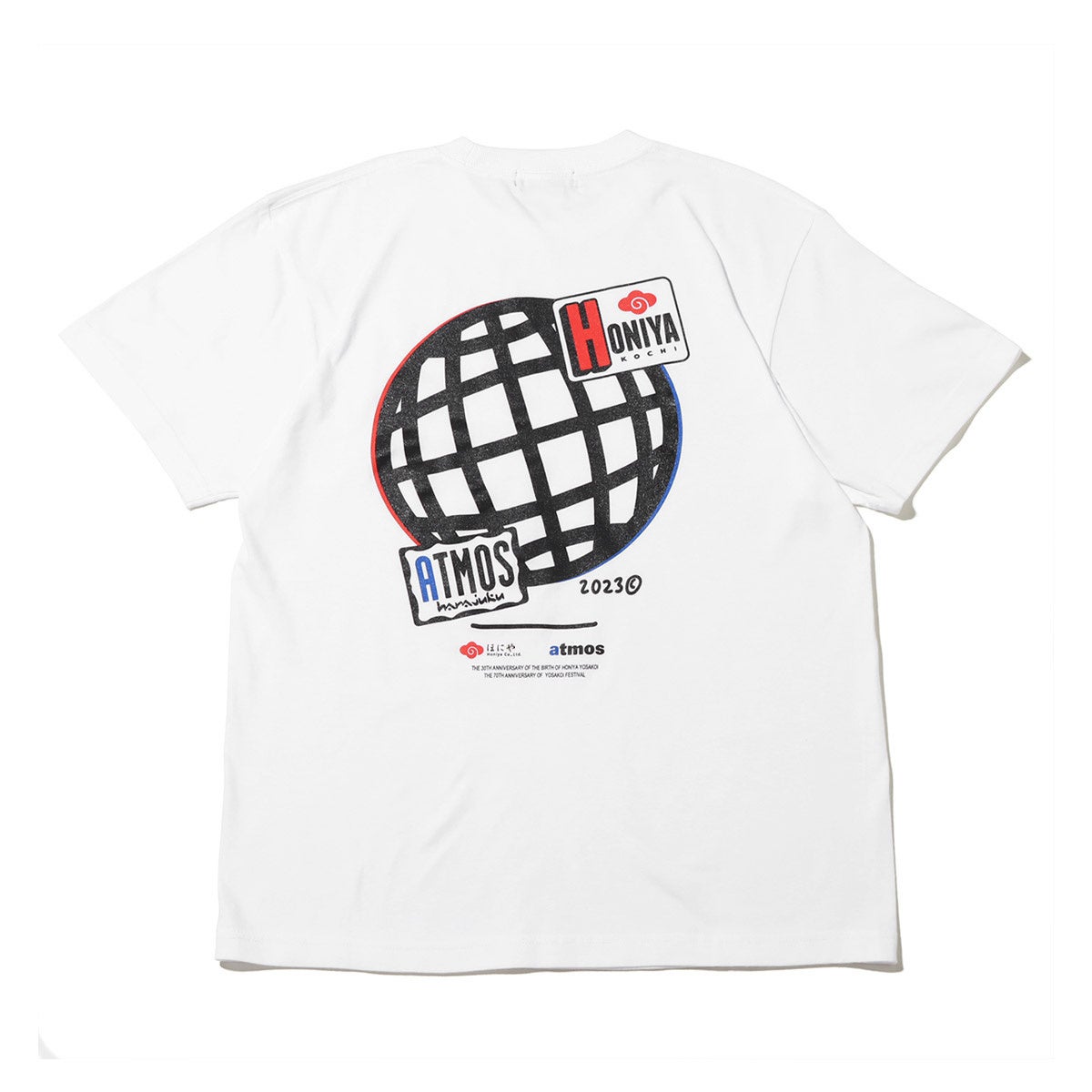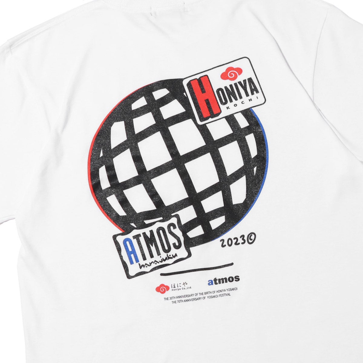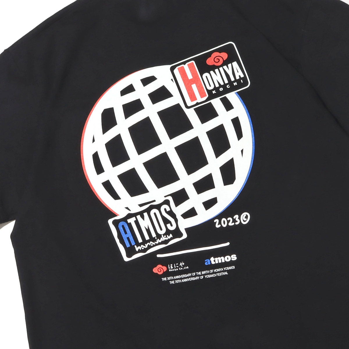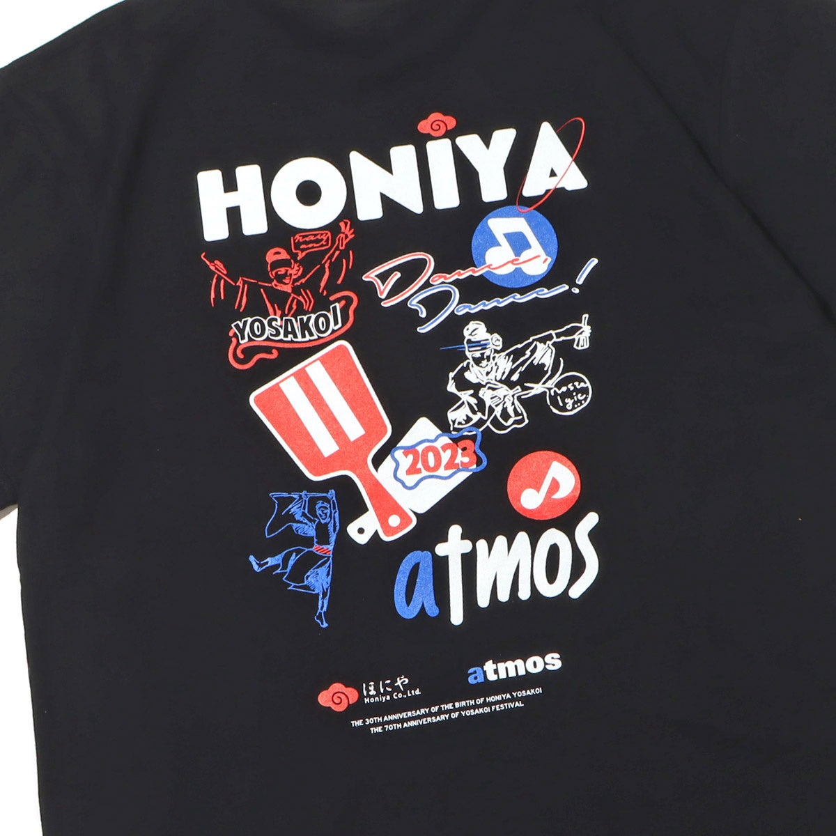 よさこい祭りは高知市内9カ所の競演場・7ヶ所の演舞場で約200チーム、約18,000人の踊り子が手に持った鳴子を鳴らしながら工夫を凝らし、地方車には華やかな飾り付けをして市内を乱舞する土佐の祭り。よさこいチームの中でも最多の9回大賞を受賞しているチーム「ほにや」とタッグを組み、「ほにや」と「atmos」のコラボレーションTシャツが4年ぶりに登場。