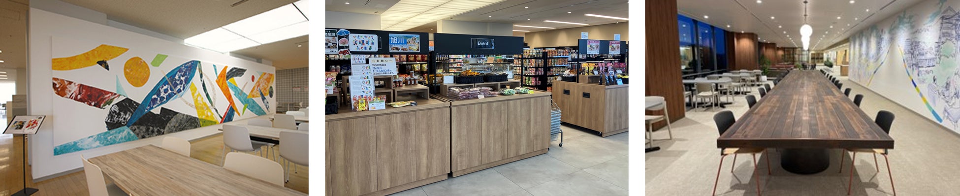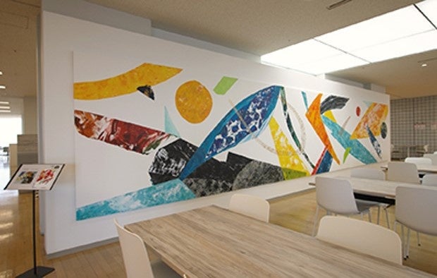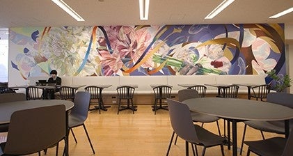 「FIELD玉川」はコワーキングスペースとしての機能を有しており、食事をしながらミーティングができる会議室も備えています。また、幅は10メートルを超え、高さも天井に届くほどの3つの大きなミューラルアート(壁画)は、社員が自ら手を挙げて制作に携わったものです。若手からベテランまで、部署の垣根を越えて集まった社員たちが、他部門社員やプロのアーティストとの交流を楽しみながら制作しました。このように共創空間の一部を「共創活動」によって創り上げたという価値を多くの社員に伝える、まさに新たな空間での「共創活動の一歩目」を象徴するミューラルアートが、「FIELD玉川」を彩ります(注2)。