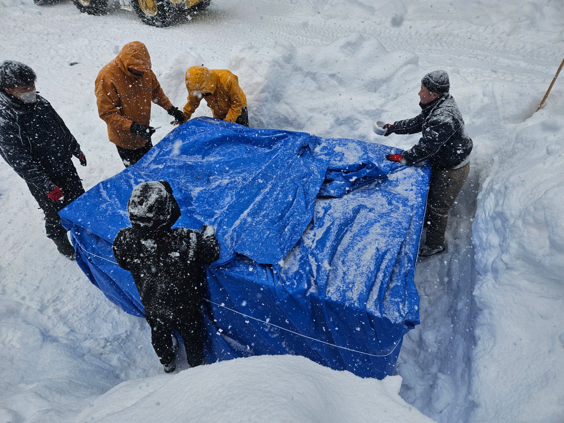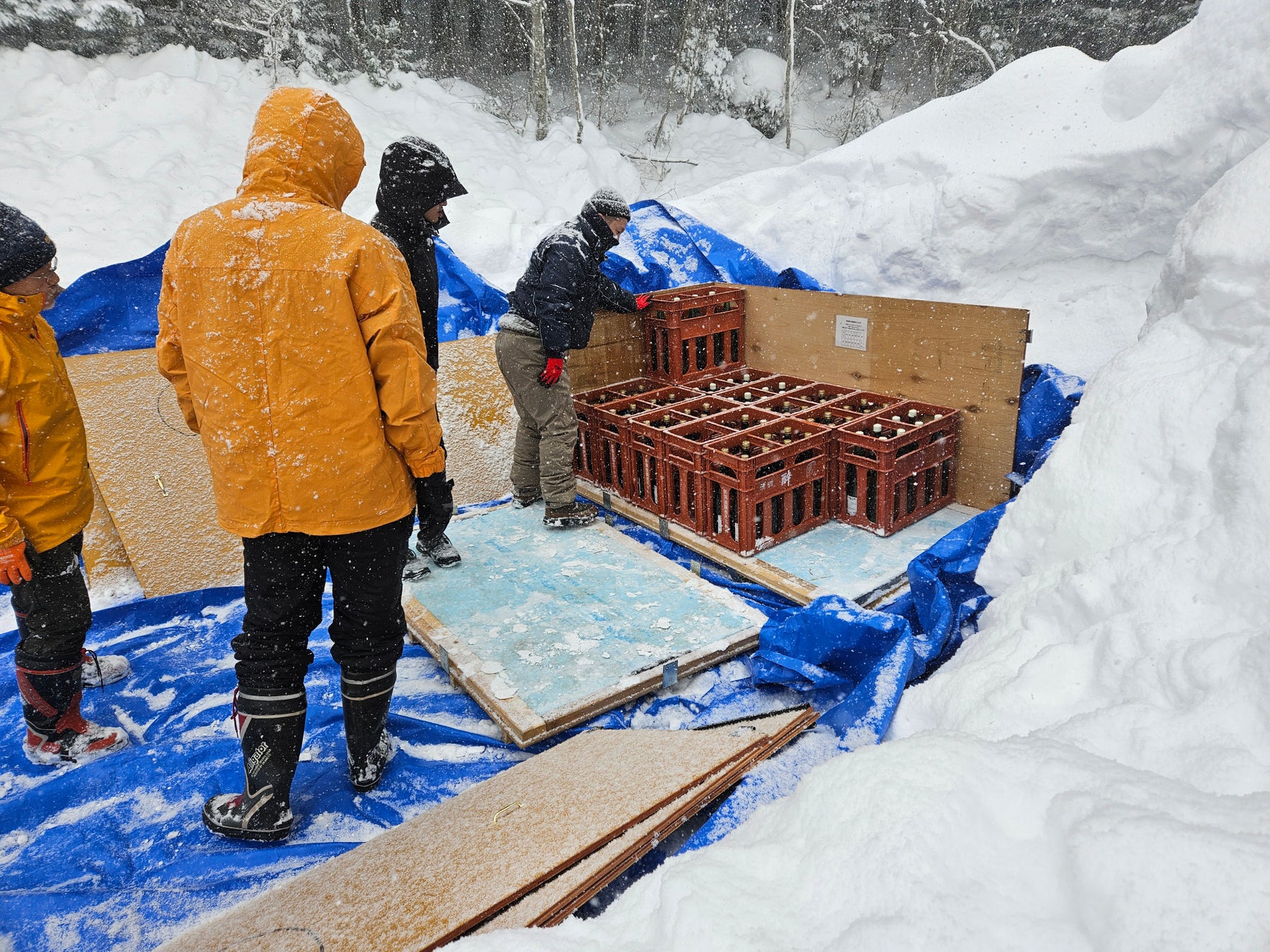 休暇村乗鞍高原の敷地内で熟成させたオリジナルの雪中埋蔵酒、いよいよ4月11日に掘り出し ~2025年大雪の信州で熟成させた雪中埋蔵酒「雪原の華」~