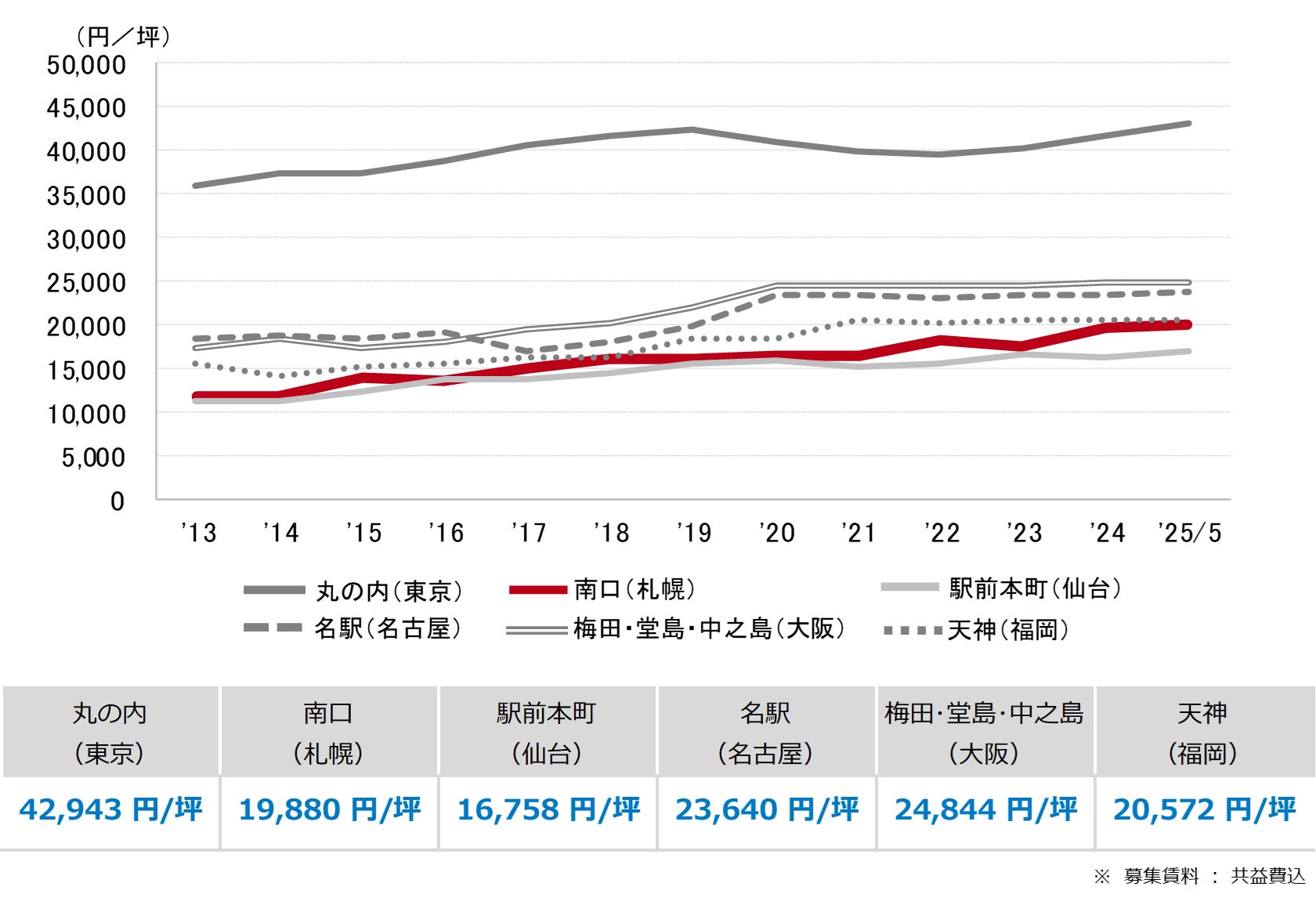 <募集賃料の推移(6大都市 大規模ビル・主要駅前地区)>