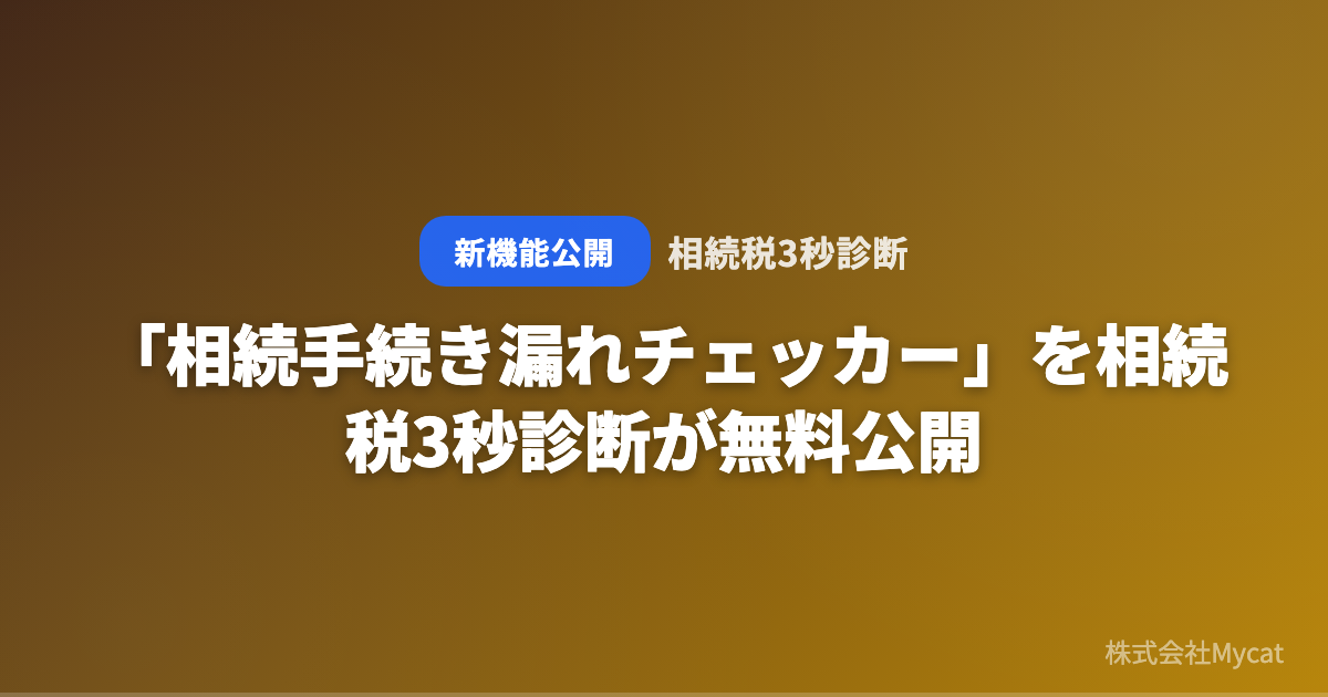 株式会社Mycat(本社:東京都目黒区)は、AI相続税シミュレーター「相続税3秒診断」(https://souzoku-ai.xyz)において、相続手続き漏れチェッカー(https://souzoku-ai.xyz/tools/omission-check)を新たに公開しました。