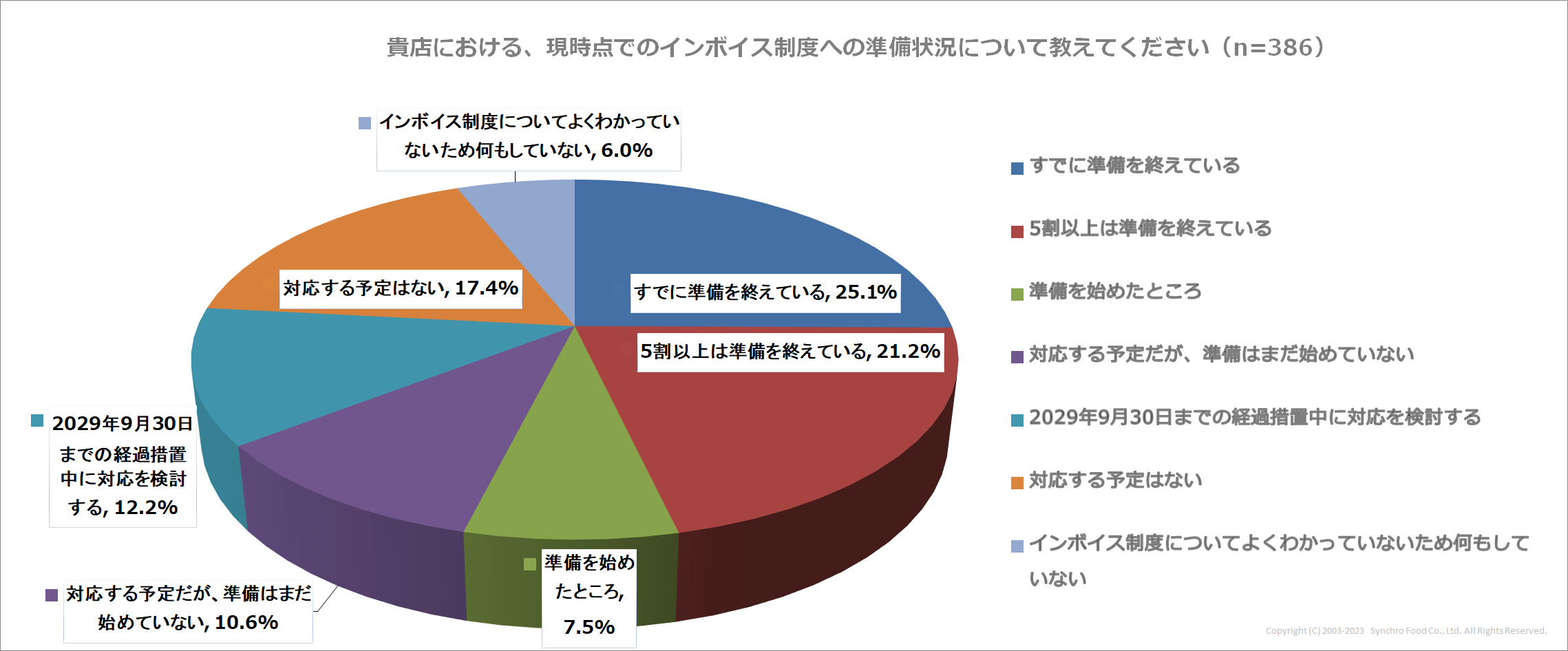 飲食店におけるインボイス制度。64.4%が対応予定も、準備済みは25.1%