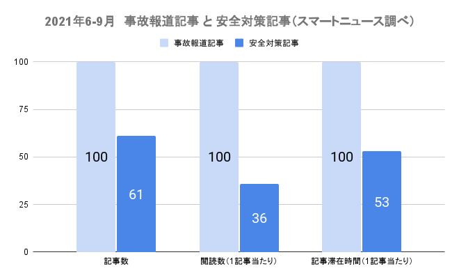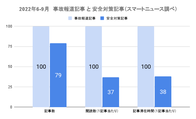 安全対策記事は、事故報道記事と比較し、閲読数、記事滞在時間が4割以下に