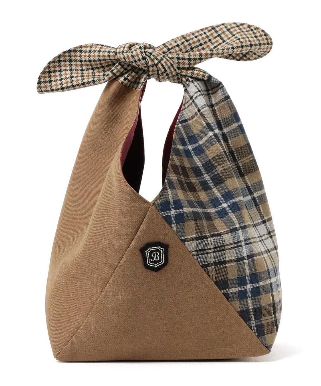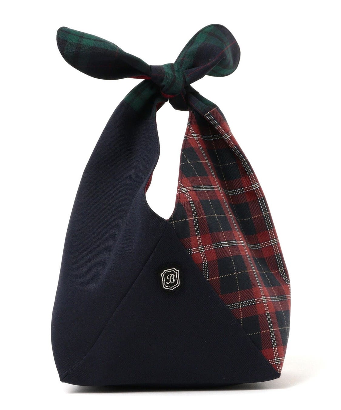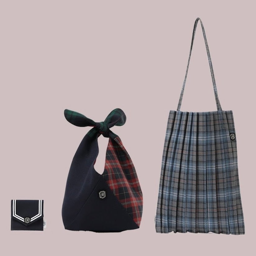 2021年に開催した岡山県の魅力を発信するイベント『BEAMS EYE on OKAYAMA(ビームス アイ オン オカヤマ)』で販売し、好評を博した〈菅公学生服〉とのコラボレーションアイテム。今回は、内側に学生服らしいタータンチェックをあしらったセーラーポーチや学生服のプリーツスカートから着想したトートバッグ、結び目をほどくとウサギの耳のようになるラビットバッグをご用意しました。