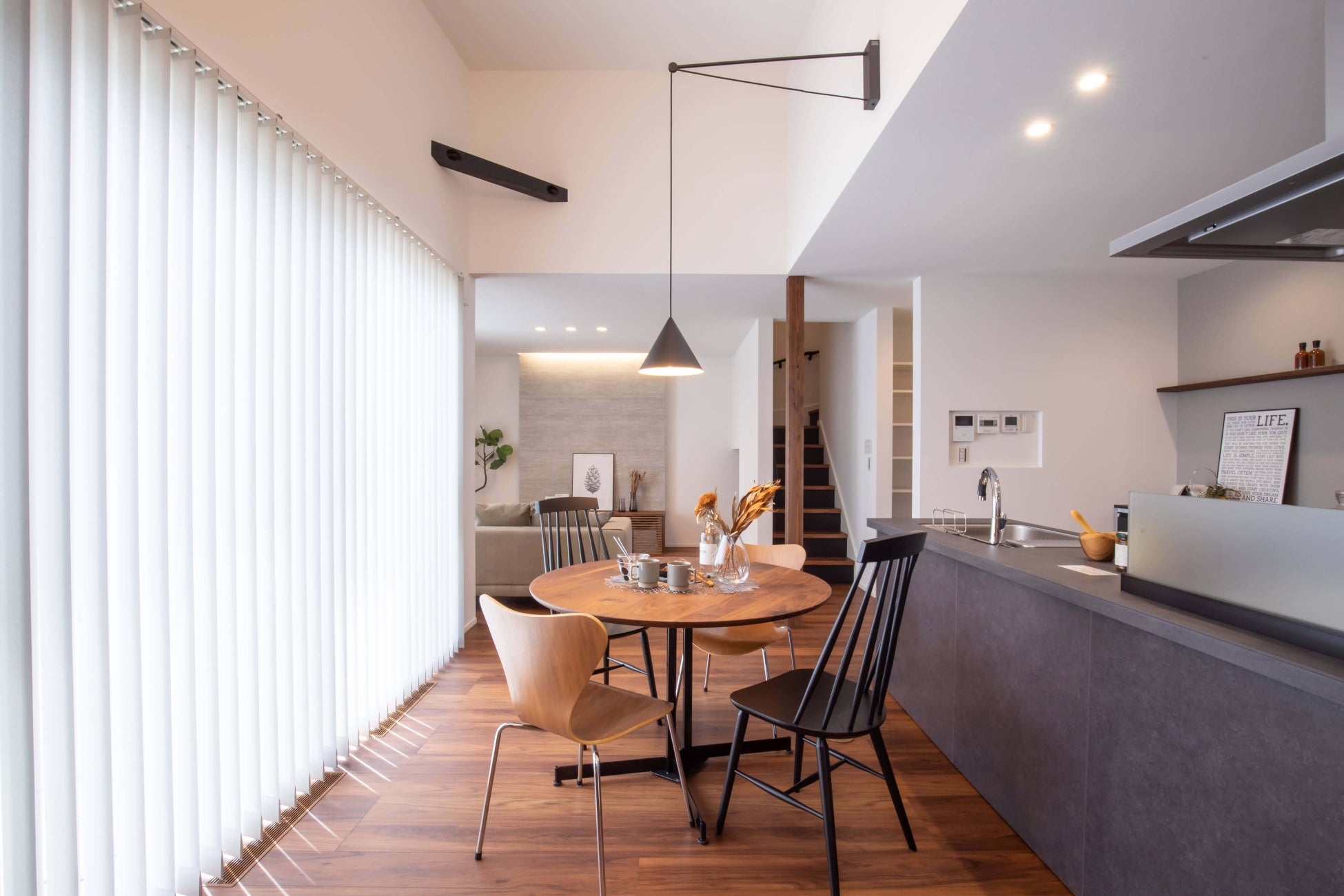 ダイニングからスカイラウンジに繋がる家づくりが特長です。グレーを基調としながら、トレンドをおさえたカラースキーム、キッチンの「カノール」によるみせる壁面収納など遊びと楽しさのあるワクワクするコーディネート。インテリア建材と家具、照明、小物までのトータルコーディネートの完成度が高く、さらにコンパクトでありながら動線もしっかり考えられている点が高い評価となりました。