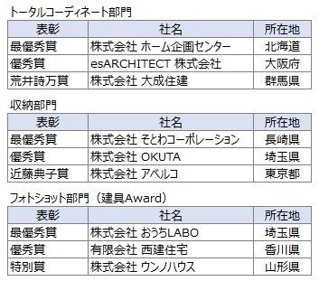 ●トータルコーディネート部門 最優秀賞 株式会社ホーム企画センターさま(北海道)