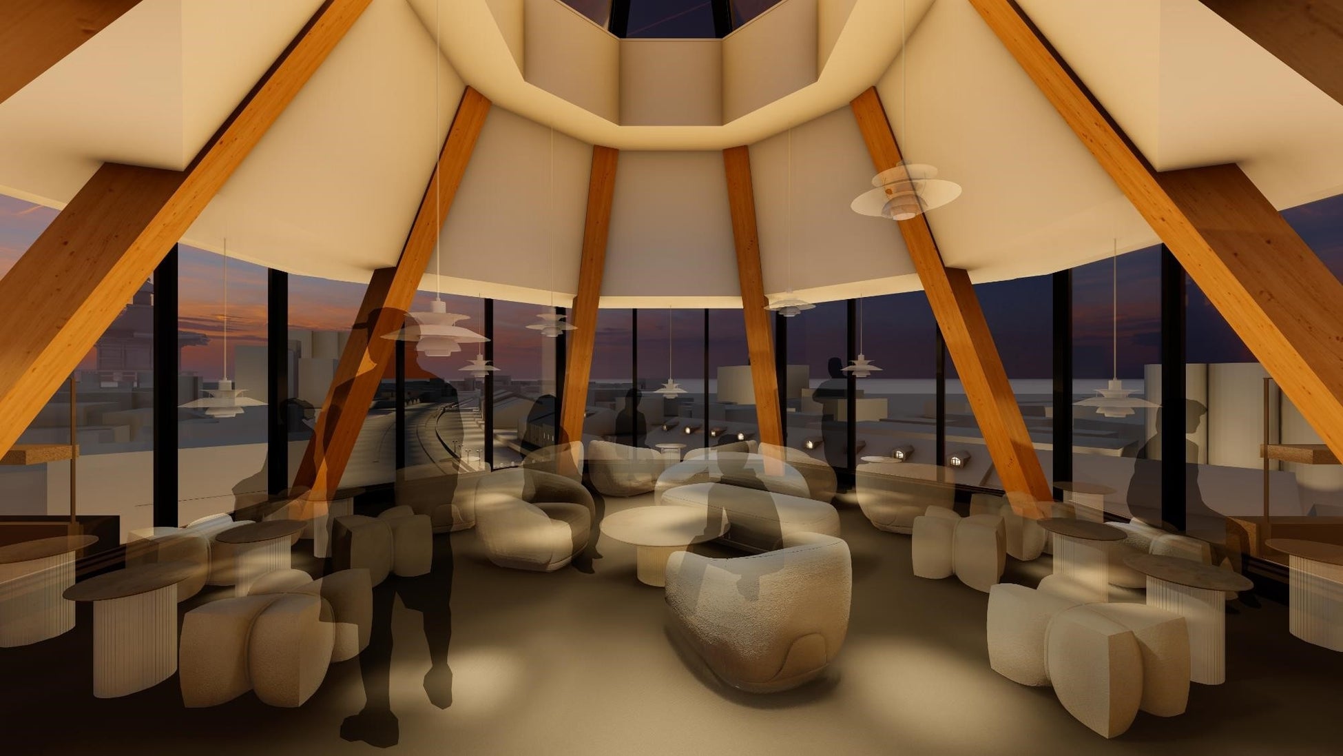当ホテルの象徴であるBAR テラスでは、小樽の街を一望いただけます。外観は、正八角形に形取られ、港町・小樽の新たな灯台をモチーフとしたデザイン。また、頂部にはトップライトを設けており、明るく開放的な空間です。