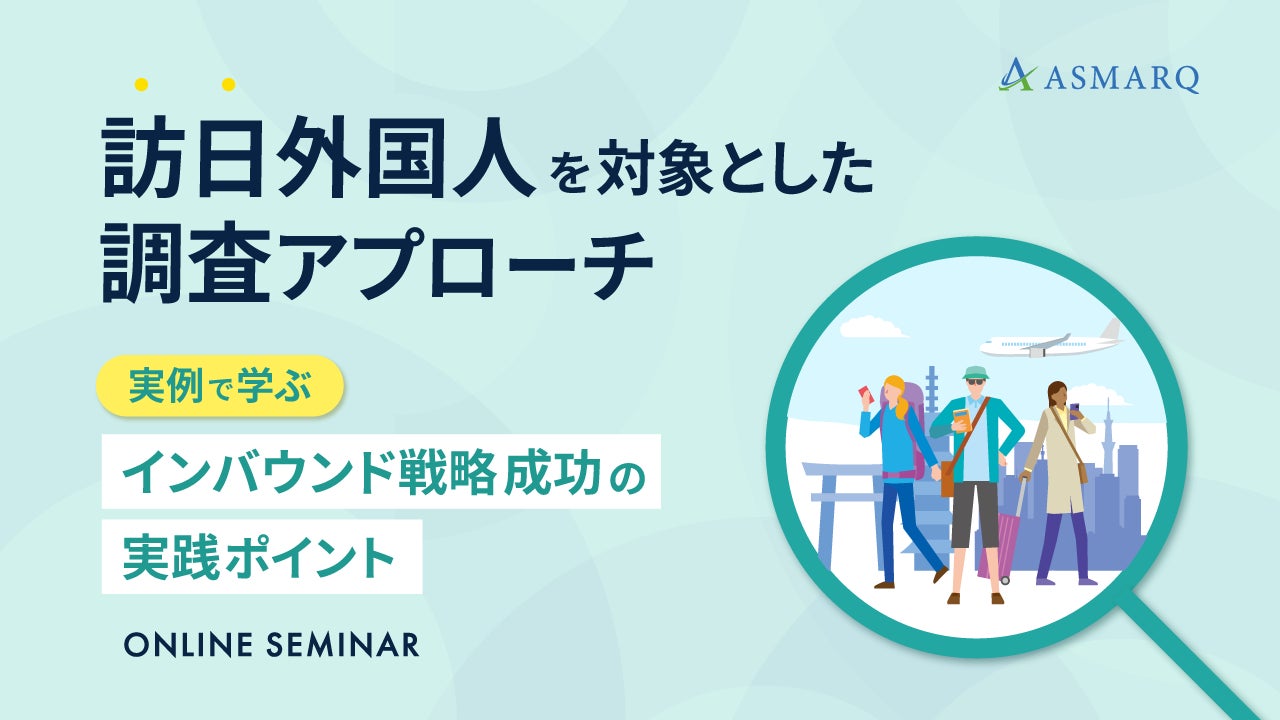 株式会社アスマーク(東京都渋谷区東、代表取締役:町田正一)は、2025年08月27日(水)13:00に、「訪日外国人調査」をテーマに、調査目的や課題に応じて、どの対象者に・どの手法でアプローチするのが最適かを、具体的な調査事例を交えて解説するセミナーをご案内いたします。