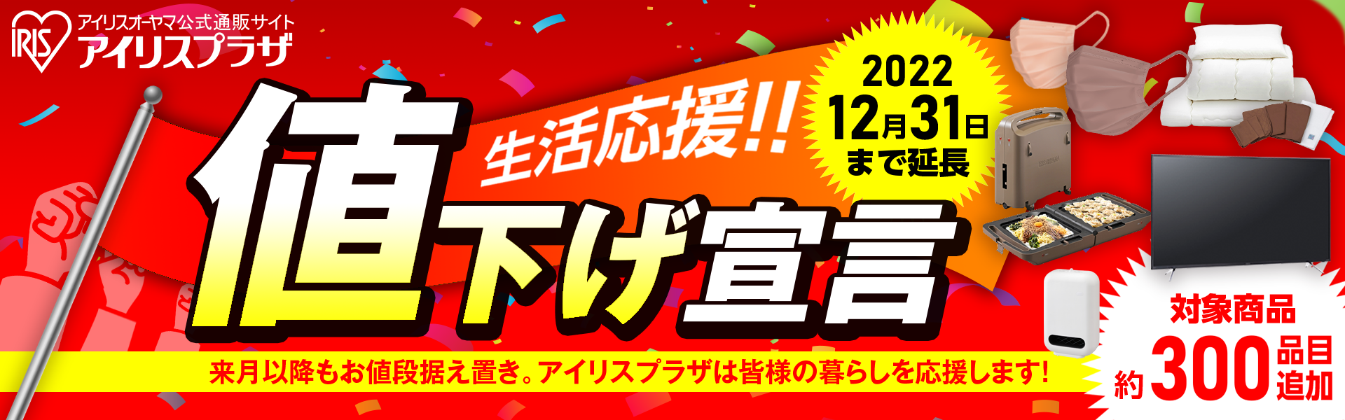 アイリスオーヤマ株式会社(本社:宮城県仙台市、代表取締役社長:大山 晃弘)は、食品をはじめ多くの生活用品の価格高騰が続くなか、日常生活を支える商品をこれからも安心して手に取りやすい価格で提供したいという想いを込めて、公式通販サイト「アイリスプラザ」で9月29日(木)より約500品目(※1)を対象にした「生活応援宣言」を実施しています。