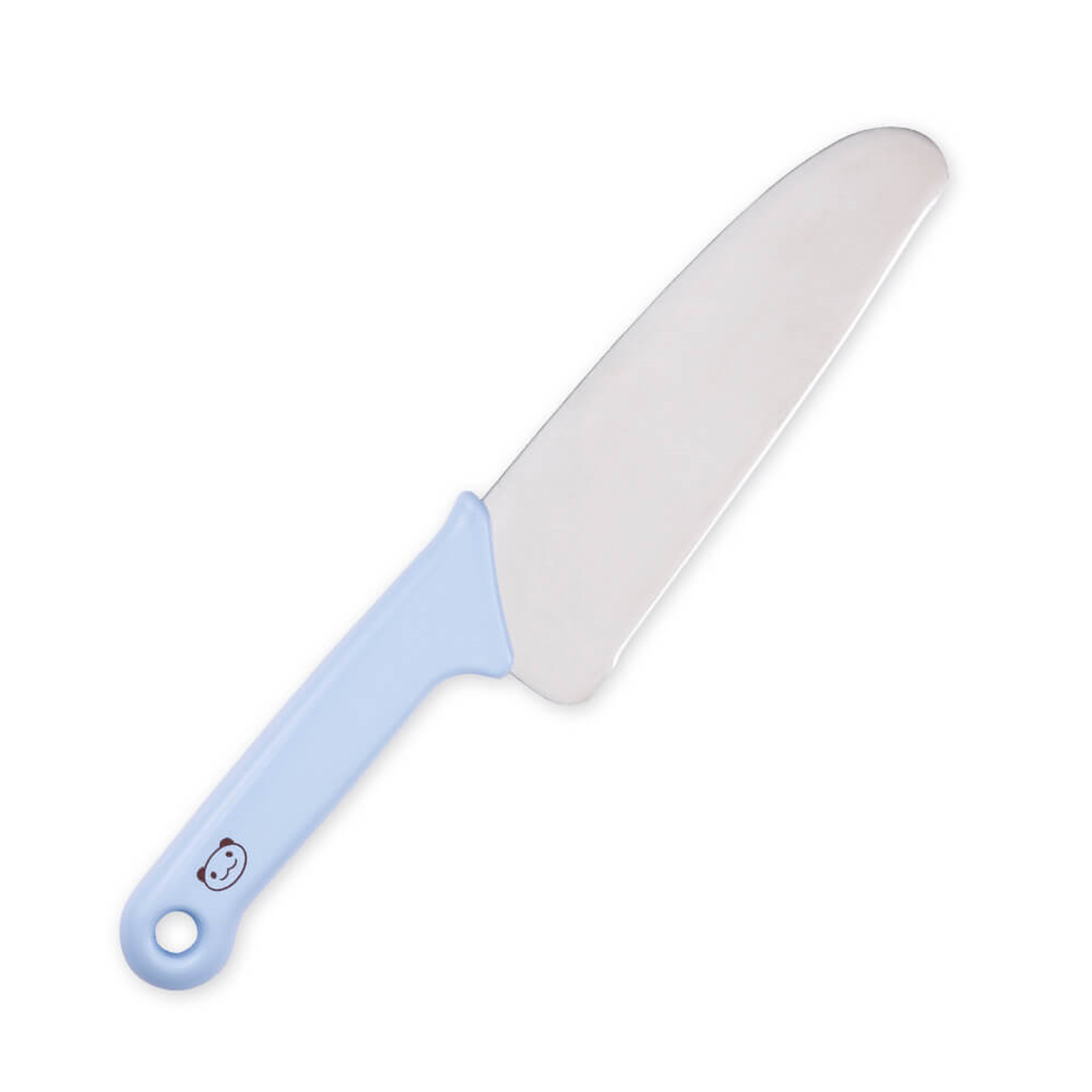 アゴと刃先を丸くした、けがをしにくい形状になっており、先のギザギザで食材を切ります。