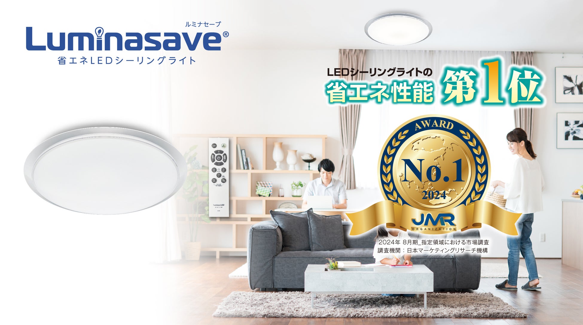 電気代が従来品LEDシーリングライト比で約40%カット!LEDシーリングライト「ルミナセーブ」がLEDシーリングライトの省エネ性能第1位を獲得