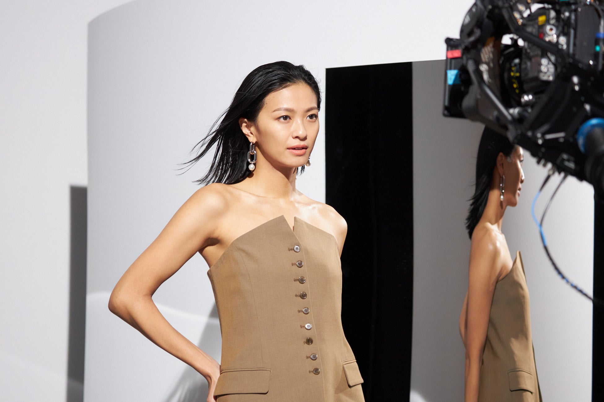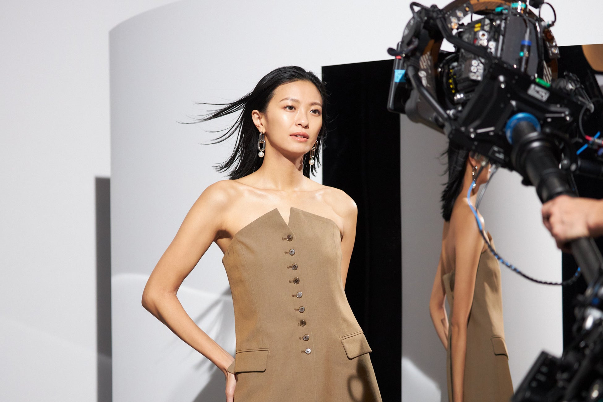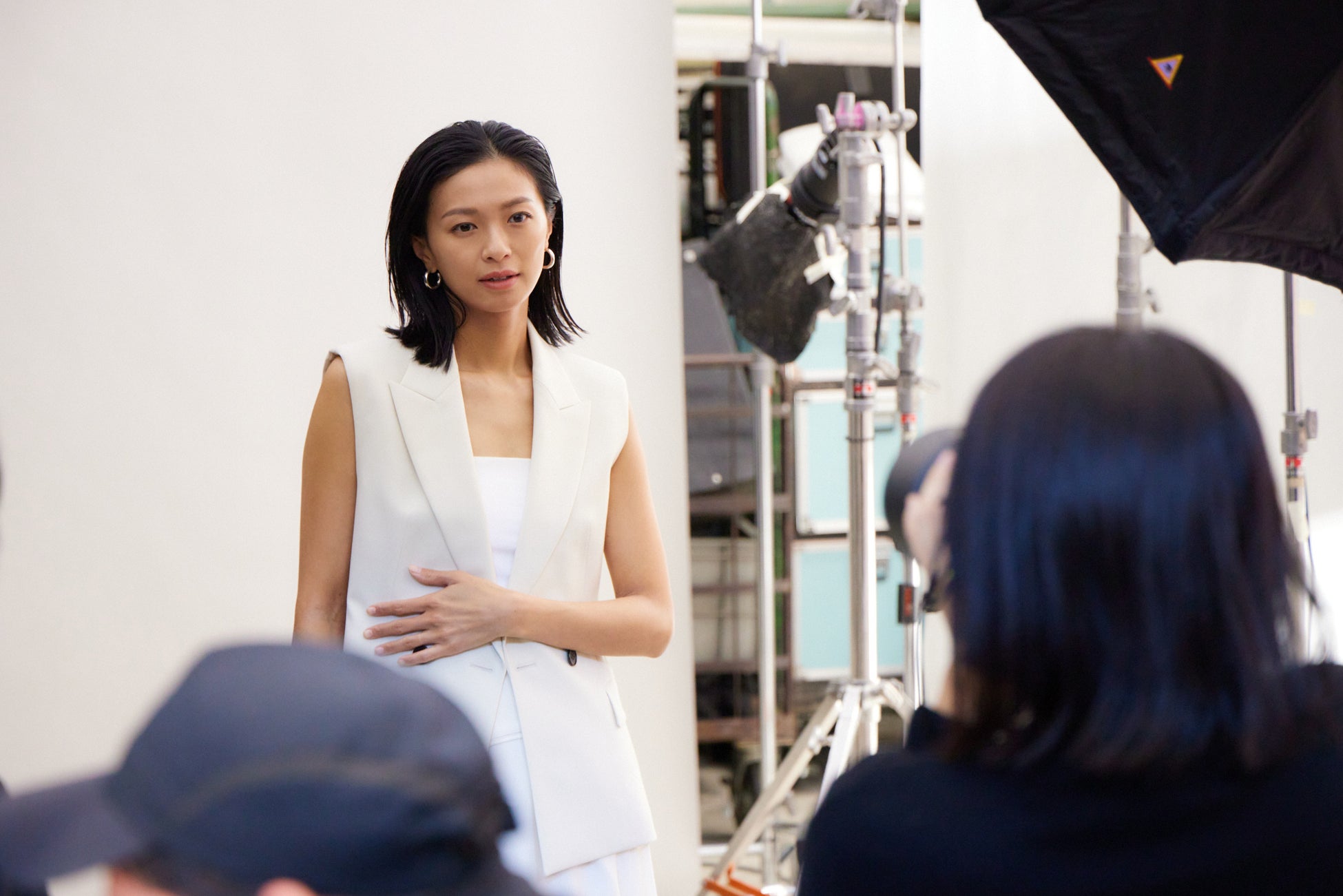 さすが榮倉さん!の美しさが詰まった撮影でした。ファッションシューティングのようなシンプルなセットで、素敵なポージングやウォーキングを披露してくれた榮倉さん。クールな表情と笑顔の切り替えも、とても魅力的でした。