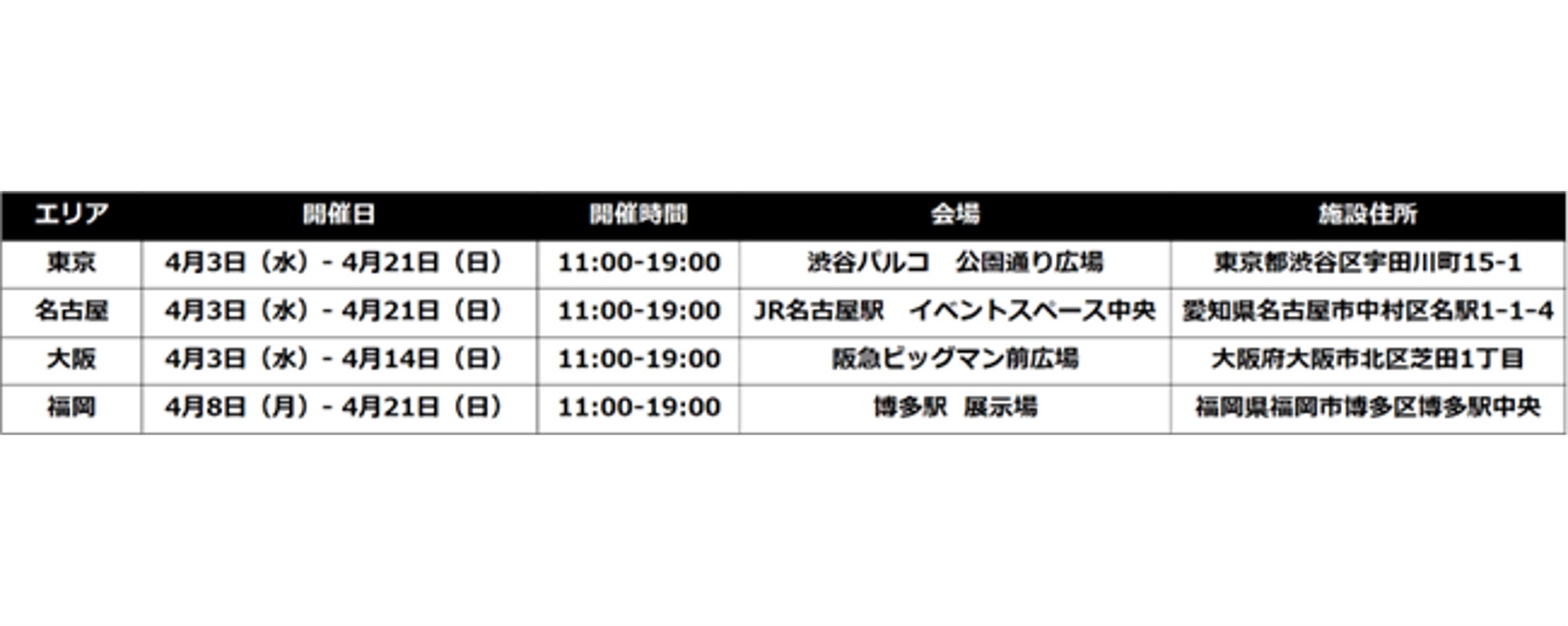 さらに、渋谷・名古屋・梅田・博多の4か所に期間限定で