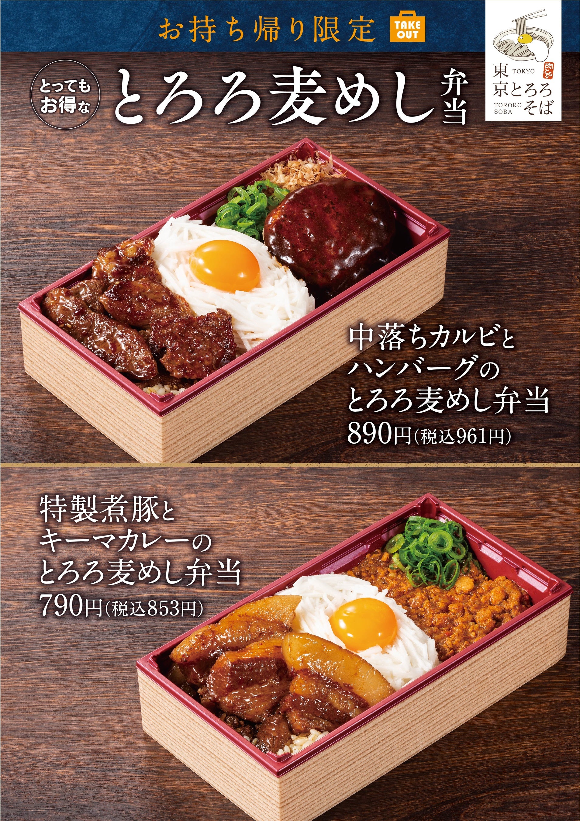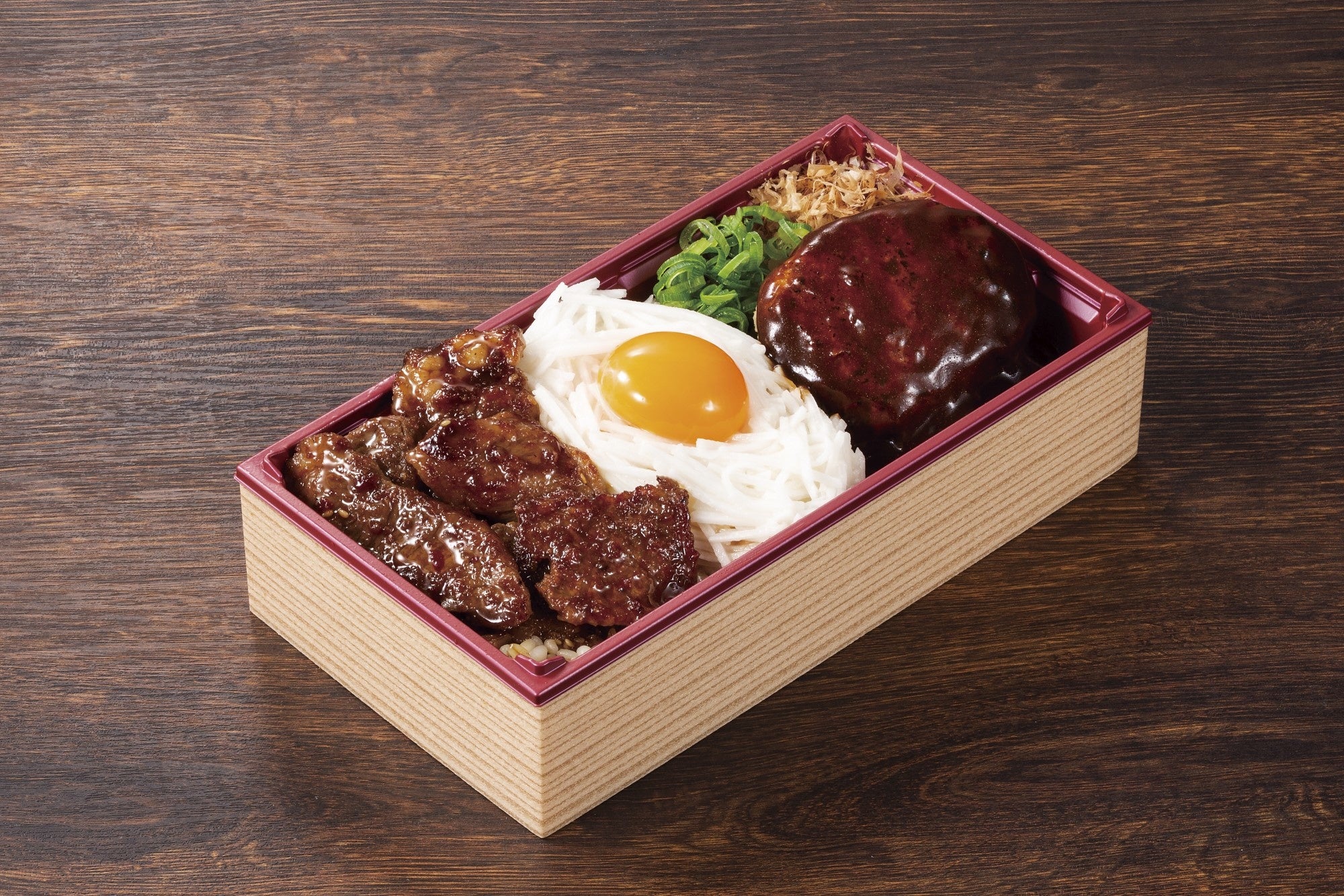 とろろ麦めし弁当2種■中落ちカルビとハンバーグのとろろ麦めし弁当 890円(税込961円)