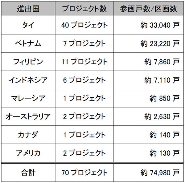 当社は現在、ASEAN諸国を中心に海外不動産事業を強化しています。今回のプロジェクトへの参画により、総計で70プロジェクト(約74,980戸)に達しました。