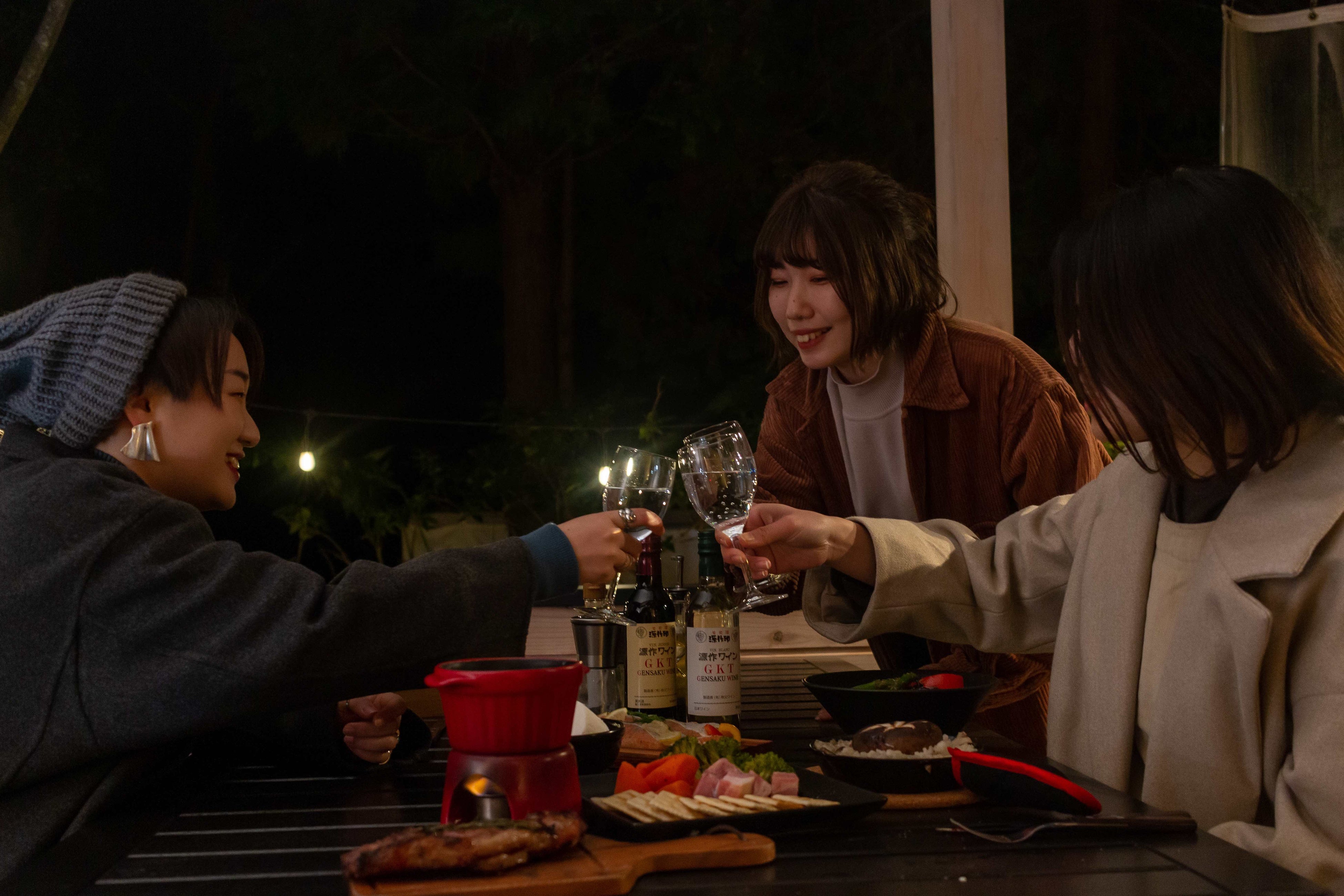 特典:焚火台の貸出+薪5㎏のご提供 / ウェルカムドリンク付き