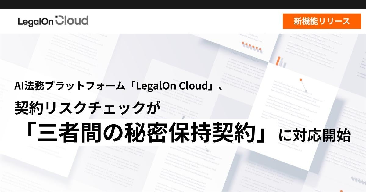 株式会社LegalOn Technologies(本社:東京都渋谷区 代表取締役 執行役員・CEO:角田 望)が提供する、AI法務プラットフォーム「LegalOn Cloud」(https://www.legalon-cloud.com/ )にて、契約リスクチェック機能が「三者間の秘密保持契約」に対応開始しました。これにより、複数の当事者間で行われる契約書審査にかかる労力を軽減します。